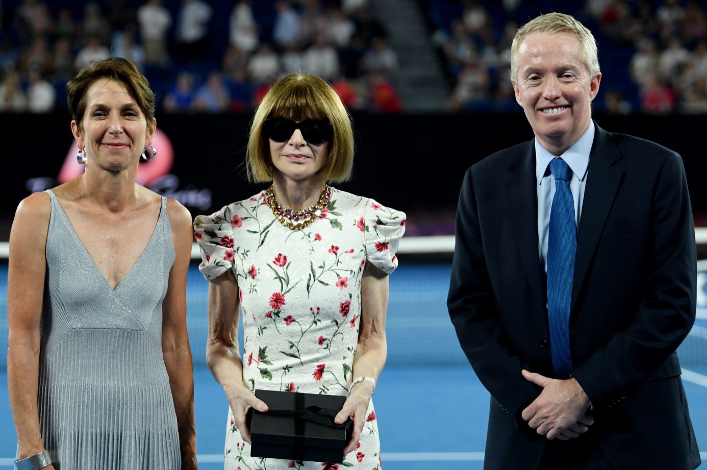 Tennis australia chair jayne hrdlicka took to the stage during the disgraceful behaviour. the crowd erupted in another roar of boos after hrdlicka thanked the victorian government for its support.